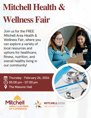 Join us for the Mitchell Area Health & Wellness Fair, where you can explore a variety of local resources and options for healthcare, fitness, nutrition, and overall healthy living in our community!