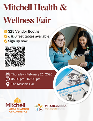 Join us for the Mitchell Area Health & Wellness Fair, where you can explore a variety of local resources and options for healthcare, fitness, nutrition, and overall healthy living in our community!
