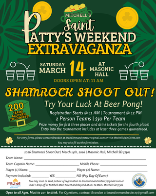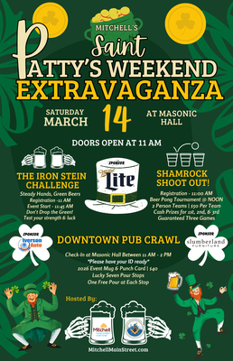 Celebrate all day with great drinks, friendly competition, and plenty of St. Patrick’s Day spirit in Downtown Mitchell.